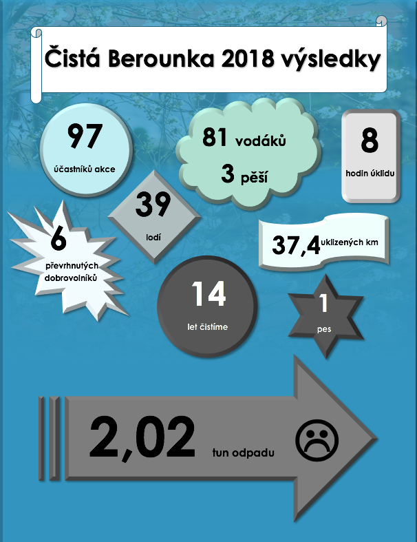 Ačkoliv účelem této akce je dobrovolné čištění řeky Berounky, máme i tu zkušenost, že někteří z dobrovolníků na námi vypůjčených lodích během minulého ročníku odpluli kamsi a dodnes je nevrátili. Naše společnost poté musela ztrátu lodí uhradit.