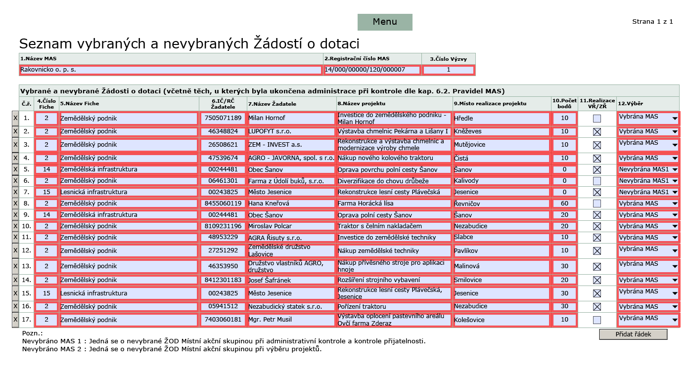 Aktuální dokumenty k Výzvě č. 1