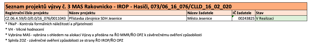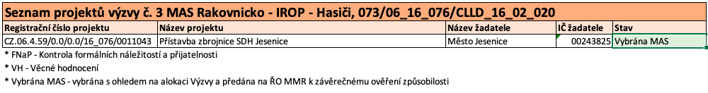 | Nadřazená výzva | IROP - (06_16_076) - 69. výzva IROP - INTEGROVANÝ ZÁCHRANNÝ SYSTÉM - INTEGROVANÉ PROJEKTY CLLD - SC 4.1 |