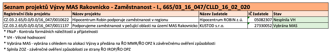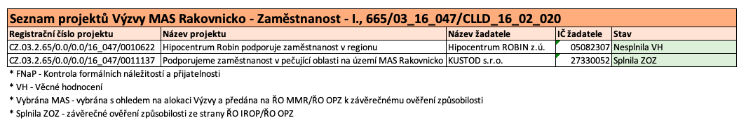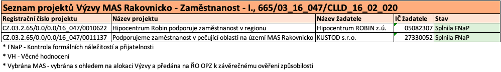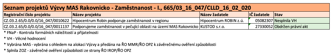 | Název výzvy MAS | Výzva MAS Rakovnicko – Zaměstnanost – I. |