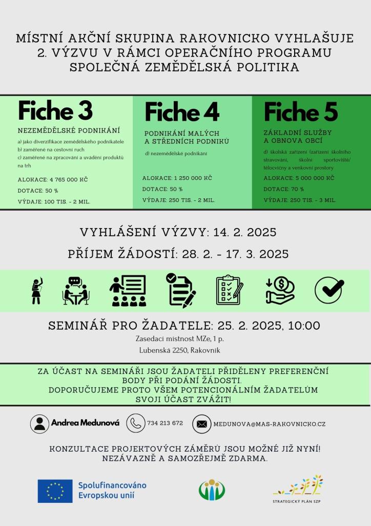 V úterý 25. 2. 2025 se v zasedací místnosti MZe (1. p.) na adrese Lubenská 2250, Rakovník od 10:00 uskuteční informační seminář pro žadatele v rámci Výzvy č. 2 operačního programu Společná zemědělská politika.